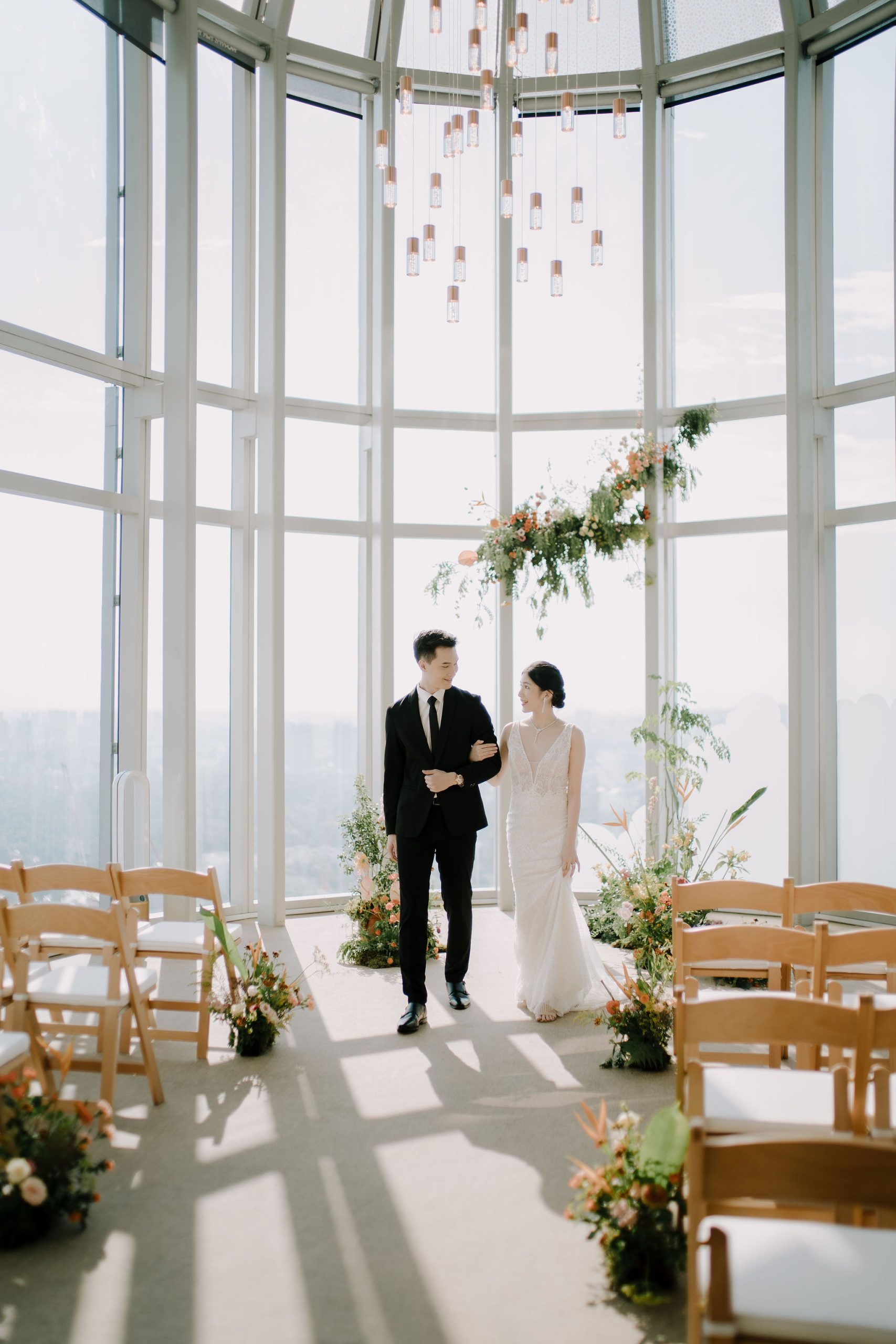 1-ATICO sets the scene and bar high for the lovebirds dreaming of a five-star stunner wedding. Designed to impress, the venue is perched atop the city’s pinnacle, 55 storeys high. Boasting a sky-high ceiling adorned with a grand window wall and modernistic light furnishings overhead, the palatial wedding venue is a vantage point that overlooks the city from a fresh angle unlike the norm, bearing bird’s eye view to a panoramic 180-degree view of the sweeping skyline – letting in the first flush of the morning, obscurity of the after-hours, and all else it has to offer.